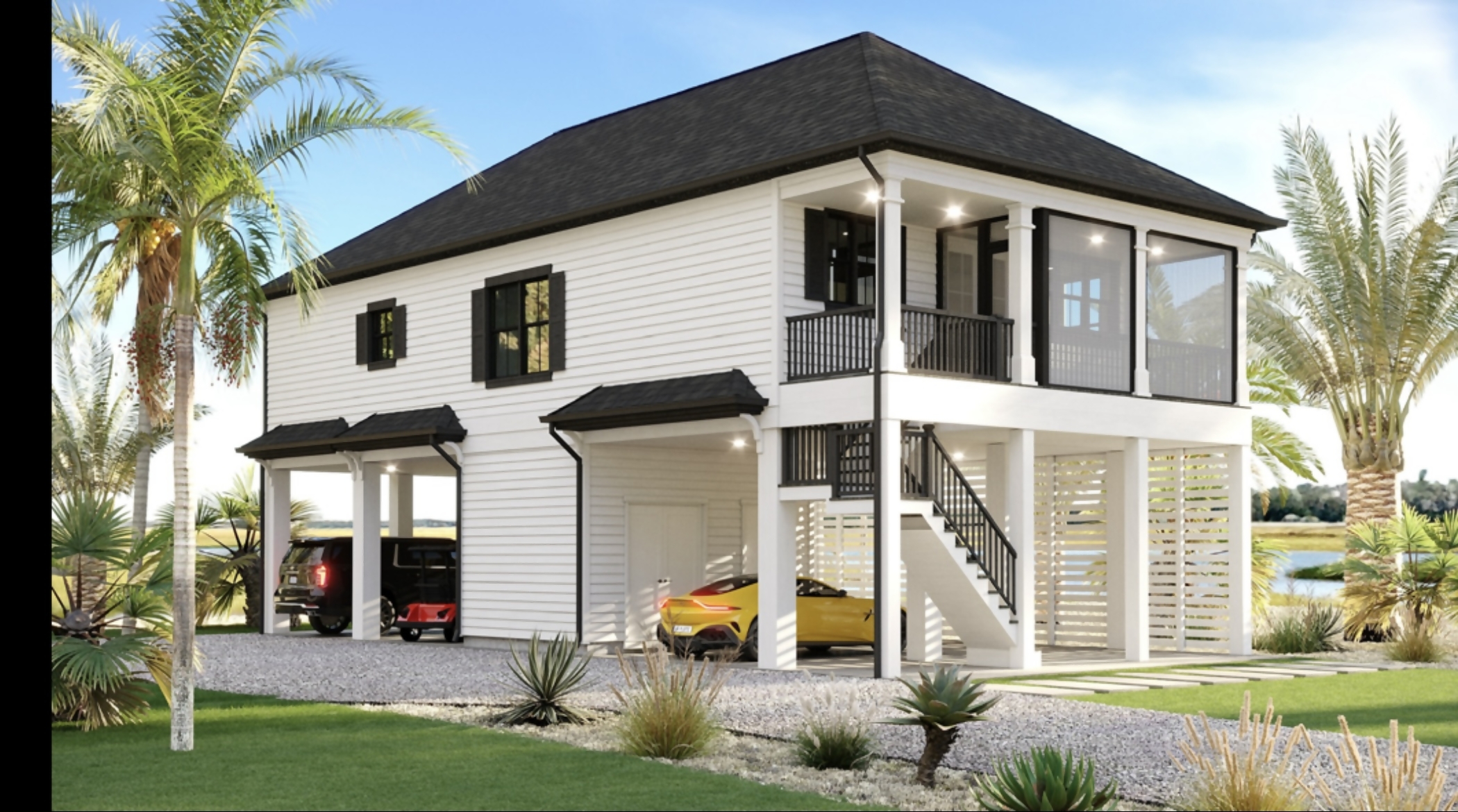 Low-country Pawleys Island style easy living house. Gorgeous marsh and ocean views and an ELEVATOR for easy living. House seems so much larger than the square footage suggests. Open floor plan. Easy to maintain. Screened-in porch. Park cars under the house. Large walk-in closet in the master bedroom and 2 vanities. Upgraded appliances. The building permit is in place. The pilings have been marked by the surveyor. Pilings to be driven in a few days. Framing will begin immediately after that. Then, come see the view that is unbelievable!! There is a 25-ft right-of-way to the left of the property to make the lot more useful. Updates and new pictures will be posted here weekly after construction begins, so stay tuned for updates and check the view soon.