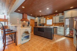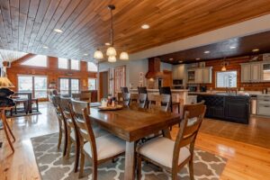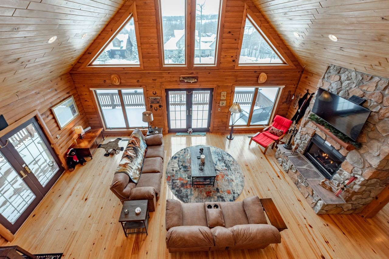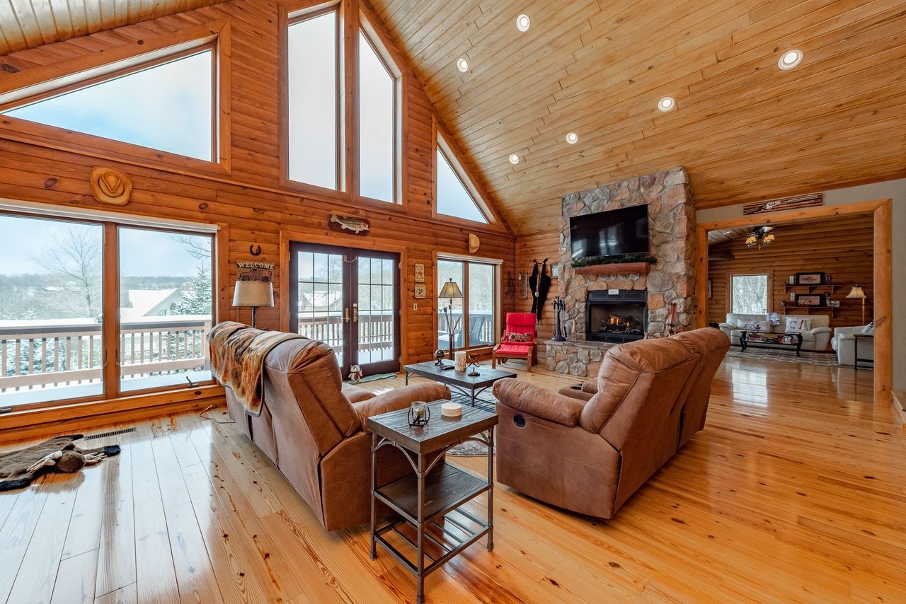 Knotty Pine Chalet is your new home away from home. Feel a sense of warmth as soon as you enter the home (and that’s not just from the stunning stone fireplace on the main level!). From gorgeous hardwood floors and wooden walls to plush furnishings and thoughtful decor throughout, this mountain chalet will wrap you in comfort and relaxation all round.