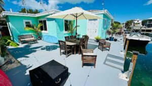 Each side ~950 sq ft with impact windows, granite counters, stainless steel appliances, and tile throughout. Boater’s Dream: 30’ concrete dock + seawall per side (60’ total) with 30 Amp shore power plug. Direct Ocean access & quick Gulf access via Vaca Cut. Income Ready: Both units currently rented month-to-month at $3,000 per side. Vacation rental potential $2,500- $3,000+/week. Lifestyle: Waterside patio with string lights, solar-lit dock pilings, under-dock fish lights attracting snapper & tarpon Manatees frequent the canal.